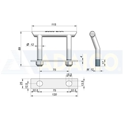 Argola Piso Zincado c/Barrita ø12 (distância entre fixadores 7,5 cm)